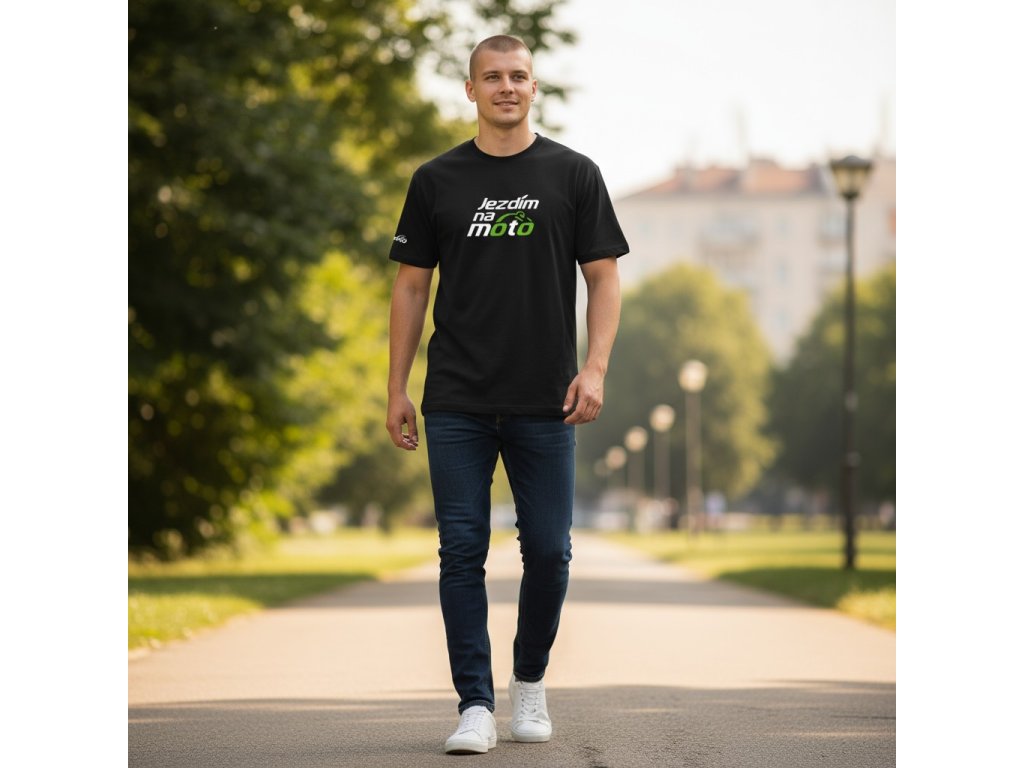 Pánské tričko s krátkým rukávem a kulatým výstřihem. Lemovka u krku je s příměsí pružného elastanu. Zpevňující vnitřní lemovka na krku a ramenou. Dvojité prošití u výstřihu, rukávech a spodním okraji. Bez postranních švů.