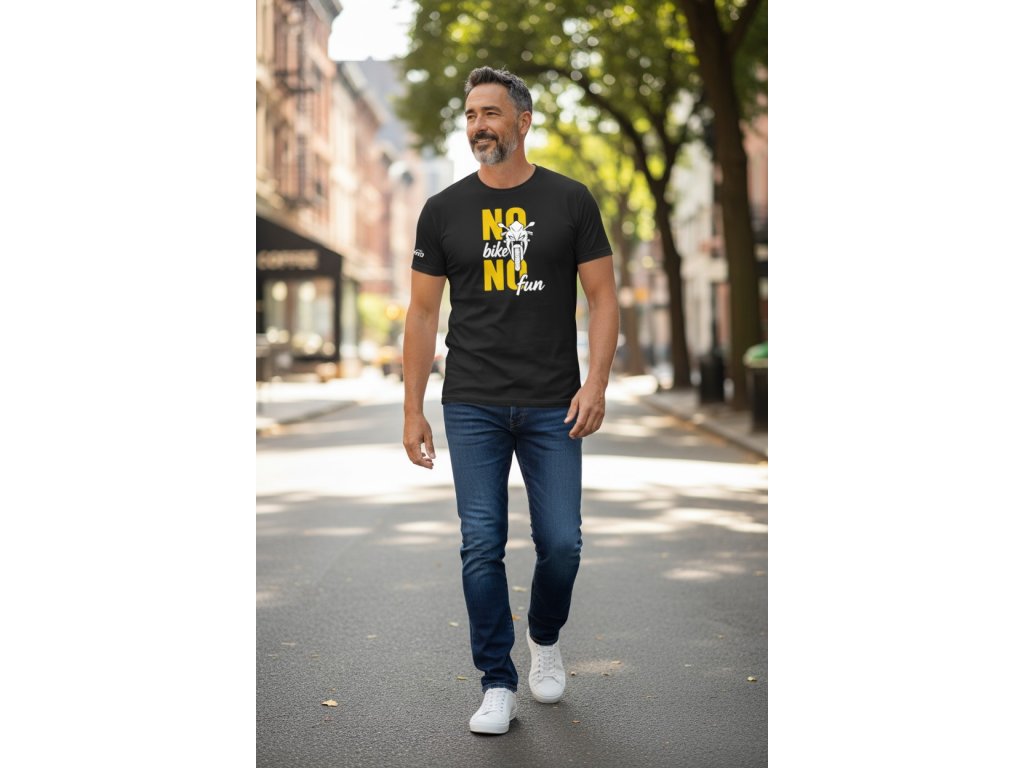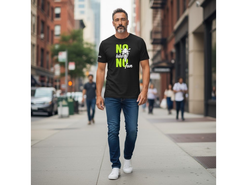 Stylové tričko pro všechny, kteří vědí, že bez motorky není zábava. Černé tričko s originálním potiskem motorky a nápisem NO BIKE NO FUN potěší každého motorkáře – na silnici i mimo ni.