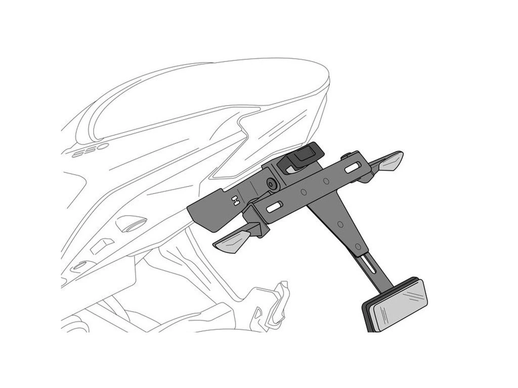 Podpěra je vybavena prostorem pro ukazatele, pamatujte, že není vhodná pro originály a je nastavitelná do 3 cm. Všimněte si, že podpora není poskytována přerušovaně, musí být zakoupena samostatně. Dalším bodem, který je třeba mít na paměti, je, že k připojení osvětlení SPZ se nepoužívají konektory.