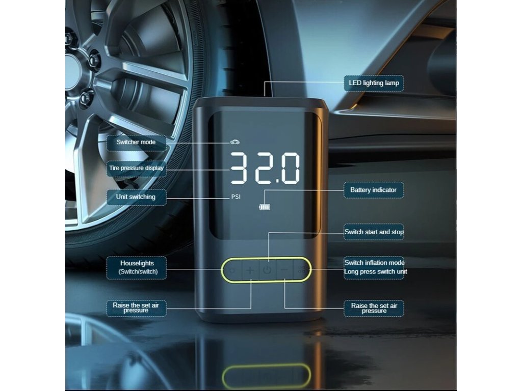 ✅ Výkonný a přenosný elektrický kompresor s LCD displejem, USB nabíjením a vestavěnou LED svítilnou – ideální společník na cesty pro auto, motorku, kolo i sportovní vybavení. Díky kompaktním rozměrům se vejde do přihrádky auta, batohu nebo brašny, takže ho budete mít vždy po ruce, když potřebujete rychle a přesně dofouknout pneumatiky či míč.