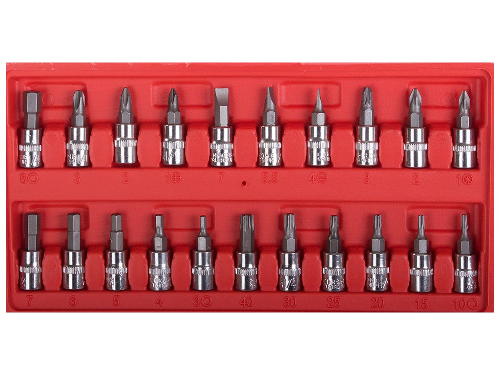 Nářadí je vyrobeno z vysoce kvalitní chrom-vanadiové oceli, která zajišťuje odolnost proti deformaci i zlomení. Vše je uloženo v praktickém plastovém kufříku s jasně označenými pozicemi pro každý kus.