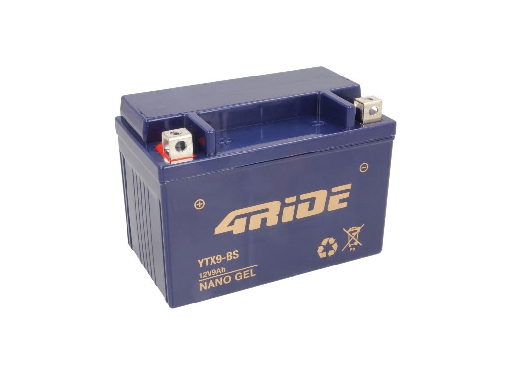 4RIDE YTX9-BS je gelová motocyklová baterie, která využívá technologii gelového elektrolytu pro zajištění spolehlivého a bezúdržbového provozu. Gelové baterie mají elektrolyt zahuštěný do formy gelu, což poskytuje lepší stabilitu, odolnost proti vibracím a schopnost fungovat v různých teplotních podmínkách. Tento typ baterie je obzvlášť vhodný pro motocykly a skútry.